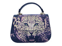 Женская сумка из натуральной кожи морского ската с узором морды леопарда. Для изготовления сумок данной модели используется натуральная кожа морского ската, кожа крупнозернистая и эластичная высокого качества выделки и окраса. На лицевой части сумки, в верхней части устроен откидывающийся вверх лицевой клапан, клапан сумки украшен принтом морды тигра. Лицевая поверхность сумки под лицевым клапаном выполнена с применением натуральной кожи морского ската и также украшена рисунком морды тигра. Лицевой клапан фиксируется на металлическую магнитную кнопку. В верхней части сумки вшита удобная ручка. Ручка выполнена на основании из кожи теленка, верхняя часть ручки украшена натуральной кожей морского ската. На обратной части сумки выполнен плоский карман с доступом в верхней части, также обратная часть сумки выполнена из кожи морского ската и украшена разноцветным принтом морды с мордочкой тигра. Для придания сумке большей эластичности боковые вставки сумки выполнены с применением кожи теленка черного цвета. В верхней части сумки, слева и справа, в местах крепления верхней ручки устроены металлические кольца для крепления съемного плечевого ремня. Съемный, с возможностью регулировки по длине плечевой ремень поставляется в комплекте с сумкой. Плечевой ремень выполнен из натуральной кожи теленка черного цвета. Плоский карман на молнии делит внутренний объем сумки на два отделения, в одном из отделений устроен объемный накладной карман для мобильного телефона, ширина кармана 15см. Во втором отделении устроен плоский боковой карман на молнии. В качестве материала подклада используется текстиль.
