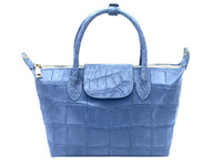 Фабрика отшила новую серию бюджетных женских сумок из натуральной кожи сиамского крокодила. Женская крокодиловая сумка светло-серого цвета. Для изготовления сумок данной модели используется натуральная кожа сиамского крокодила, кожа эластичная и очень приятная на ощупь. Сумка классической формы в виде перевернутой трапеции с расширением к верхней части. Все наружные поверхности сумки такие как: лицевая и обратная часть сумки, верхние ручки и дно сумки исполнены в коже крокодила. В верхней части сумки вшита металлическая молния золотого цвета. Слева и справа, в верху молнии устроены люверсы для крепления съемного плечевого ремня. Верхние ручки сумки отшиты из кожи крокодила и выполнены в круглой форме которая очень приятно и удобно ложится в руку. Расстояние от верха сумки до ручек – 10см, что позволяет носить данную сумку даже на предплечье. На дне сумки устроены 4 металлические ножки золотого цвета. Внутри сумка выполнена в одном объеме, в качестве материала подклада используется кожа теленка, подобранная под цвет кожи крокодила. Для повышения удобства пользования данной крокодиловой сумкой внутри сумки устроены карманы – вшивной боковой на молнии и сдвоенный накладной карман. Съемный плечевой ремень, с возможностью регулировки по длине поставляется в комплекте с сумкой. Плечевой ремень отшит из натуральной кожи теленка и верхняя часть ремня имеет отделку из крокодиловой кожи. Крокодиловые сумки данной модели отшиты этой фабрикой в первый раз, они получились довольно бюджетными, сумки изготовлены в пяти различных цветах: в красном, черном, сером, коньячном и гималаи. Данные женские крокодиловые сумки не имеют определенной лицевой и обратной стороны, данными сумками с одинаковым удобством могут пользоваться как левши, так и правши. Эти сумки из крокодиловой кожи приглянуться тем из вас кто отдает предпочтение сумкам среднего размера, которые можно носить как в руке, так и на плече.