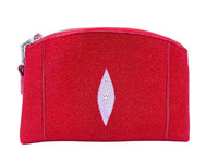 Женская сумка из натуральной кожи морского ската красного цвета. Средне размерная женская плечевая сумка. Для изготовления сумок данной модели применена натуральная кожи морского ската, кожа высокого качества выделки и окраса, мягкая, эластичная и крупнозернистая. На лицевой и на обратной части сумки-клатча мы видим вертикальные ромбообразные глазки белого цвета, эти глазки характерная черта изделий из натуральной кожи морского ската. При окрашивании шкурок морского ската центральную спинную часть кожи ската обычно выделяют белым цветом. Клатч состоит из двух независимых отделений, каждое из которых закрывается на металлическую молнию. По центру сумки, в верхней части, между двумя отделениями устроен удобный карман с доступом сверху, карман закрывается на металлическую магнитную кнопку. На боковых поверхностях клатча крепится плечевой ремень. Клатч оборудован несъемным плечевым ремнем, с удобной расширяющейся кожаной накладкой в верхней части плечевого ремня. В качестве плечевого ремня применена металлическая цепочка, в качестве дополнительного украшения цепочка оплетена кожаным шнурком из теленка, кожаный шнурок подобран по цвету под цвет кожи морского ската, расстояние от верха сумки до верха плечевого ремня- 50-52см. Внутренние наполнение сумки-клатча: в одном из отделений устроено два накладных боковых кармана, в другом отделении выполнен удобный боковой карман на молнии. В качестве материала подклада используется мягкий текстиль. Центральная часть клатча выполнена из натуральной кожи теленка подобранной по цвету под цвет кожи морского ската. Сумки клатчи данной модели удобные и довольно популярные и отшиваются из кожи морского ската в различных цветах.