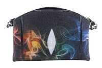 Женская сумка из кожи морского ската черного цвета с узором в виде линий