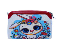 Женский клатч из натуральной кожи морского ската, белого цвета с изображением зайчика в длинными ушками. Для пошива клатчей данной модели используется натуральная, высокого качества выделки и окраса кожа морского ската. В верхней части клатча вшита удобная металлическая молния, вокруг молнии выполнена вставка из натуральной кожи теленка красного цвета. В качестве основного украшения данной плечевой сумочки изображение зайчика с длинными ушками в цветочках выполнено на обеих сторонах изделия. В верхней части сумки, слева и справа вшиты металлические D- образные кольца для крепления съемного плечевого ремня. Съемный плечевой ремень, шириной 1,5см, длиной 130см, с возможностью регулировки по длине поставляется в комплекте с данным клатчем. Плечевой ремень выполнен из натуральной кожи теленка красного цвета. Дно сумочки-клатча выполнено из натуральной кожи теленка красного цвета. Внутри сумка клатч выполнены в одном объеме, для дополнительного удобства пользования клатчем внутри устроены удобные карманы, сдвоенный боковой накладной и на противоположной стороне вшивной боковой карман на молнии, в качестве дополнительного украшения, на внутреннем кармане, вокруг молнии выполнена декоративная вставка-рамочка из кожи теленка. Сумочки-клатчи данной модели выпускаются как в разноцветной окраске в различными принтами, так и в одноцветной окраске с белым ромбообразным глазком.