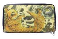 Клатч-кошелек на двух молниях из кожи морского ската с узором виде золотой рыбки