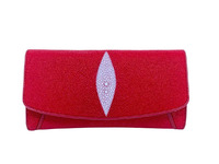 Женский кошелек из натуральной кожи морского ската красного цвета. Кошелек женский, большой, трехскладный из кожи ската. Кошельки данной модели понравятся тем из вас, кто предпочитает крупноформатные трехскладные кошельки, вместительные с хорошим функционалом. Данная модель кошельков из кожи ската является эталоном женского большого кошелька и отшивается как коже морского ската различных цветов, так и в других сортах экзотической кожи. Для пошива данных кошельков используется натуральная кожа морского ската, натуральная кожа теленка, подобранная по цвету под цвет кожи морского ската и текстиль. Лицевой клапан кошелька и его обратная сторона выполнены из натуральной, крупнозернистой кожи морского ската, кожа высокого качества выделки и окраса, эластичная и очень приятная на ощупь. Лицевой клапан украшен вертикальным белым глазком, такого рода белые глазки это центральная крупнозернистая спинная часть шкурки морского ската, выделяемая при классическом окрашивании кожи ската белым цветом. На обратной стороне кошелька выполнен широкий, на всю ширину кошелька плоский карман, доступ в карман устроен в верхней части кошелька. На внутренней поверхности лицевого клапана, в нижней его части выполнена металлическая магнитная кнопка, этой магнитной кнопкой лицевой клапан фиксируется к кошельку, ответная кнопка устроена на лицевой поверхности кошелька, под клапаном. Кошелек широкий, тройного сложения. Внутри кошелька, на лицевой поверхности устроен кожаный хлястик, отстегнув который вы получаете доступ к отделениям с карточками. В этом отделении выполнено двенадцать отделений для карточек, одно из которых с прозрачным окошком и два плоских кармана с доступом из центральной части того складного отделения, эти плоский карманы изготовлены на всю ширину кошелька. Также кошелек оборудован двумя отделениями для банкнот. Кошельки данной модели не имеют специального объемного отделения монетница, но эти кошельки оборудованы удобным плоским карманом на молнии. Этот карман расположен в последнем отделении для банкнот и может использоваться и как монетница и как отделение для иных мелких ценных предметов. За этим отделением ка молнии выполнен еще один плоский карман на всю ширину кошелька. Высококачественная кожа теленка и текстиль используются в качестве материала подклада данного кошелька из кожи морского ската.