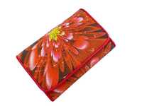 Женский кошелек из натуральной кожи морского ската разноцветный с узорами в виде цветов.