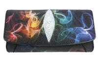 Женский кошелек из кожи морского ската черного цвета с разноцветными узорами