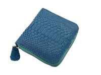 Женский кошелек на молнии из натуральной кожи питона, брюшная часть, цвет темно-зеленый.