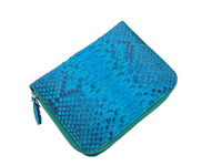 Женский кошелек на молнии из натуральной кожи питона, брюшная часть, цвет бирюзовый.