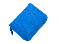 Женский кошелек на молнии из натуральной кожи питона, брюшная часть, цвет голубой.