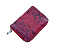 Женский кошелек на молнии из натуральной кожи питона, брюшная часть, цвет красный.