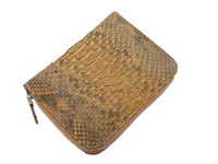 Женский кошелек на молнии из натуральной кожи питона, брюшная часть, цвет светло-коричневый.