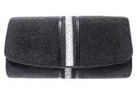Женский кошелек из кожи морского ската цвет черный с вертикальной белой полосой