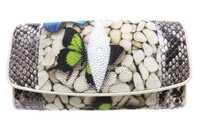 Женский кошелек из кожи морского ската и кожи питона с узором в виде камней и бабочек