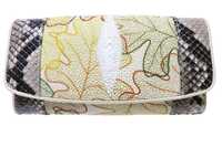 Женский кошелек из кожи морского ската и кожи питона с узором в виде силуэтов листьев
