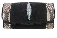 Женский кошелек из кожи морского ската черного цвета и кожи питона натурального цвета