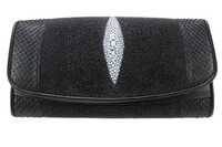 Женский кошелек из кожи морского ската и кожи питона черного цвета