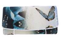 Женский кошелек из кожи морского ската разноцветный с узором в виде бабочек