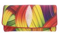 Женский кошелек из кожи морского ската разноцветный с узором в виде мазков кистью