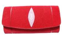 Женский складной кошелек из натуральной кожи морского ската, кошелек тройного сложения. Удобный, вместительный, функциональный женский кошелек из кожи ската. Для изготовления кошельков данной модели используется натуральная кожа морского ската, кожа высокого качества выделки и окраса, кожа крупнозернистая, мягкая, эластичная и очень приятная на ощупь. На лицевой части кошелька мы видим белый овальный глазок, это характерная отличительная черта кожи ската, спинная часть шкурки ската. На обратной стороне кошелька устроен удобный плоский, широкий карман, карман выполнен на всю ширину кошелька. Кошелек состоит из шести отделений для карточек, одно из которых выполнено с прозрачным окошком, из двух плоских и широких карманов, устроенных на всю ширину кошелька, эти карманы расположены под отделением для карточек. В центральной части кошелька устроены еще шесть отделений для различных карточек, за отделениями для карточек устроено два отделения для банкнот, в последнем отделении для банкнот устроено плоское отделение на молнии, это отделение может быть использовано как отделение для монет или для хранения любых мелких предметов. За монетницей устроен еще один плоский широкий карман устроенный на всю ширину кошелька. В качестве материала подклада данного кошелька из кожи ската использована натуральная кожа теленка под цвет изделия и текстиль. Данные женские складные кошельки из кожи морского ската являются широко распространенной и популярной моделью женских кошельков и изготавливаются как из кожи ската в различных цветах и с различными принтами, так и из других сортов элитной экзотической кожи, кожи крокодила, кожи питона, кожи варана