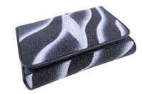 Женский кошелек с монетницей из кожи морского ската цвет черный с узорами в виде серых волнистых полос