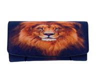 Одна из самых удачных и популярных женских моделей кошельков из натуральной кожи морского ската с притом в виде головы льва. Для пошива кошельков данной модели фабрика использует натуральную высококачественную кожу морского ската, кожа крупнозернистая, эластичная и очень приятная на ощупь. Кошелек тройного сложения или трайфолд, широкий, функциональный, вместительный, правильной прямоугольной формы на лицевой поверхности кошелька мы видим откидывающийся вверх лицевой клапан, лицевой клапан в нижней части имеет овальную форму, внутри клапана расположена магнитная кнопка-застежка, на эту кнопку лицевой клапан фиксируется к лицевой поверхности, на обратной стороне кошелька устроен плоский карман, карман выполнен на всю ширину и высоту кошелька, доступ в карман устроен на обратной стороне кошелька в верхней части. Лицевая часть кошелька, обратная поверхность и лицевой клапан данного кошелька выполнены с применением натуральной кожи морского ската. Внутри кошелек состоит из двух широких отделений для банкнот, одного плоского кармана на молнии этот карман на молнии расположен в одном из отделений для купюр. Данное отделение на молнии хоть и имеет плоскую форму, однако может быть использовано вами и как монетница, и как кармашек для хранения мелких ценных предметов. За отделением на молнии устроен широкий плоский карман. Также внутри кошелька выполнены двенадцать слотов для всевозможных карточек, один из слотов выполнен с прозрачным окошком. Два широких, на всю ширину кошелька, плоских кармана, расположены под слотом для шести карточек, тех, что с прозрачным окошком. Натуральная, высококачественная кожа теленка, утонченная для придания кошельку меньшего веса была использована при создании внутреннего наполнения женских кошельков из кожи морского ската данной модели, также внутри кошелька местами применен текстиль.